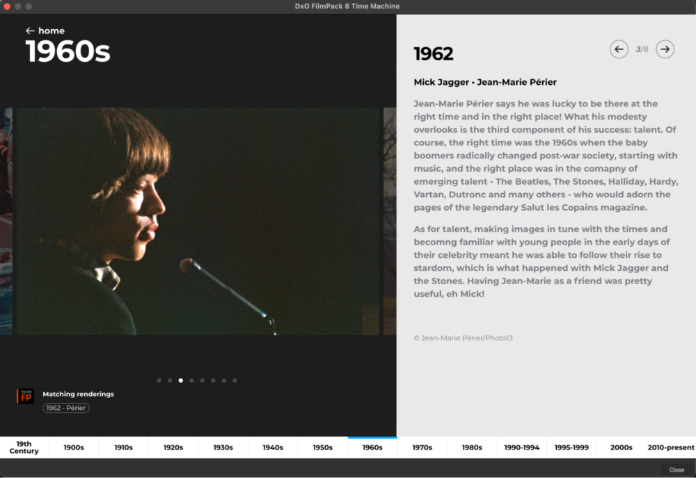 - Beautifully curated collection of historic imagery, including the “looks” of many iconic images (Looks = film stock emulation + processing effects)