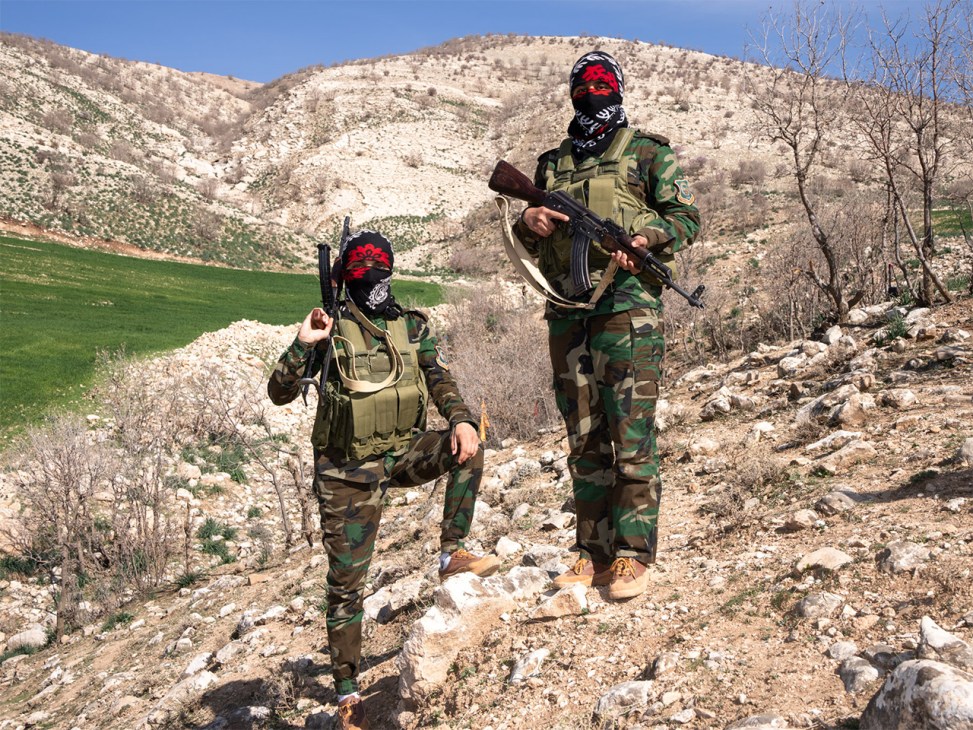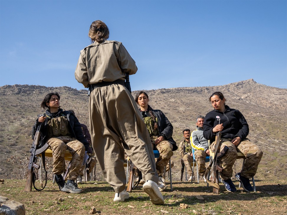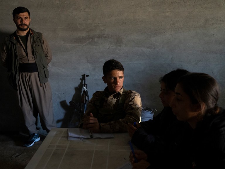 Fellow Komala member Fattahi teaches a weekly class on political ideology to new recruits in a small, bare, hut-like building with a whiteboard. This week’s subject is secularism. Recruits rest their Kalashnikovs against the wall and take out notebooks. The room’s single light bulb appears to be broken but Fattahi’s enthusiasm is undimmed. In front of the class, her demeanour transforms from soft-spoken politician to firebrand orator. During a break, we head outside. Fattahi, calm again, apologises for the intensity of her lecture. “People come here from a society where the government has told them how to think,” she says. “Many have never had the privilege of challenging these ideas. This is the first time they are being exposed to any other concepts.”
